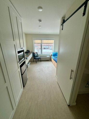 Plover Place offers 24 units of housing to people who have experienced long term homelessness. Units are fully furnished and include private bathrooms and a galley kitchen with mini fridge and microwave. Each of the two 12-unit buildings also have a community room, shared full kitchen and laundry.